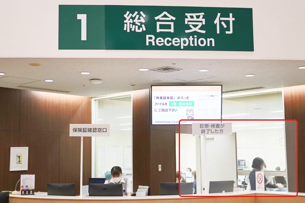 1番総合受付:診察・検査が終了した方窓口に「外来基本票」をご提出ください。